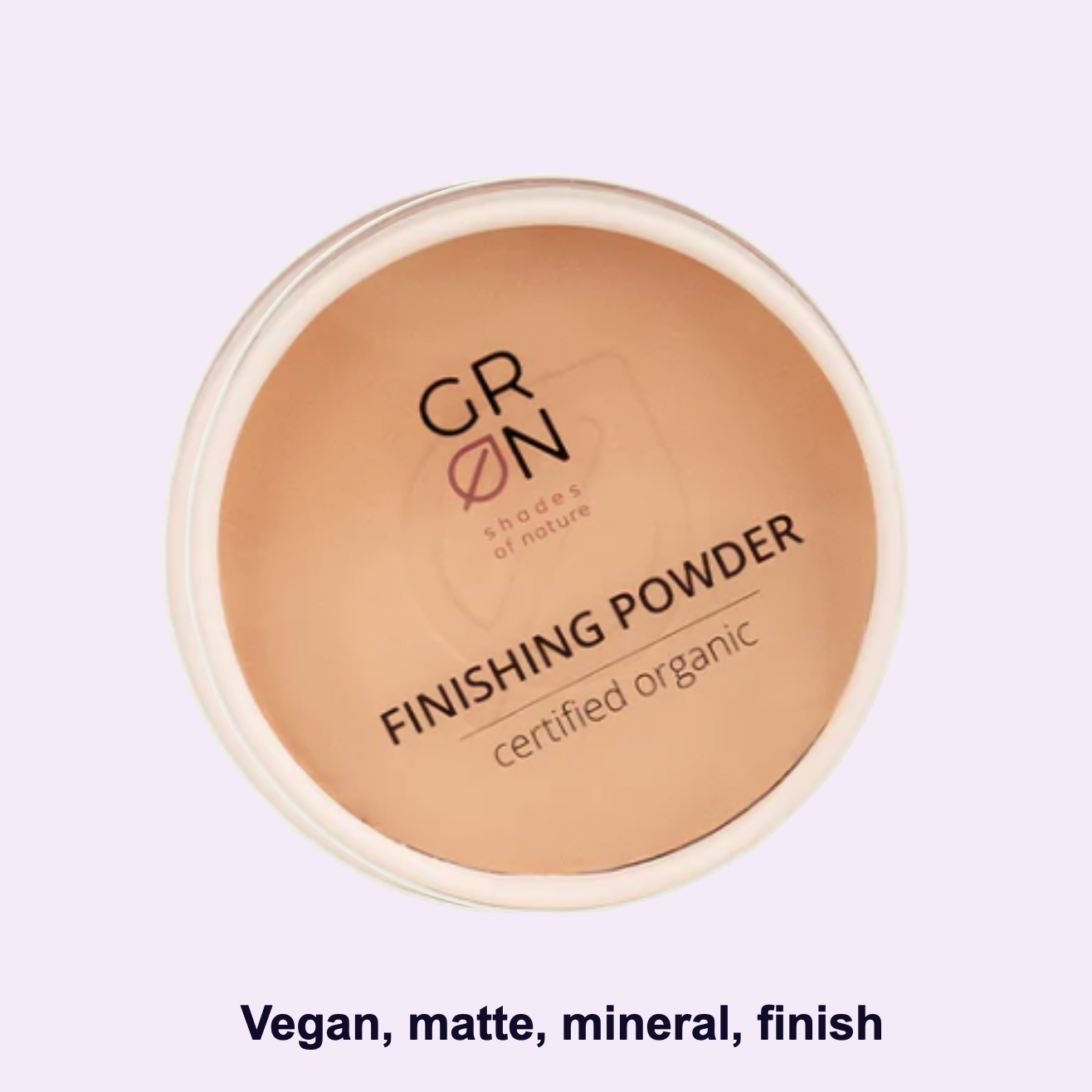 Vegan matte powder. Sets makeup or wear alone. Brush from nose outwards. Use on T-zone for a fresh finish.