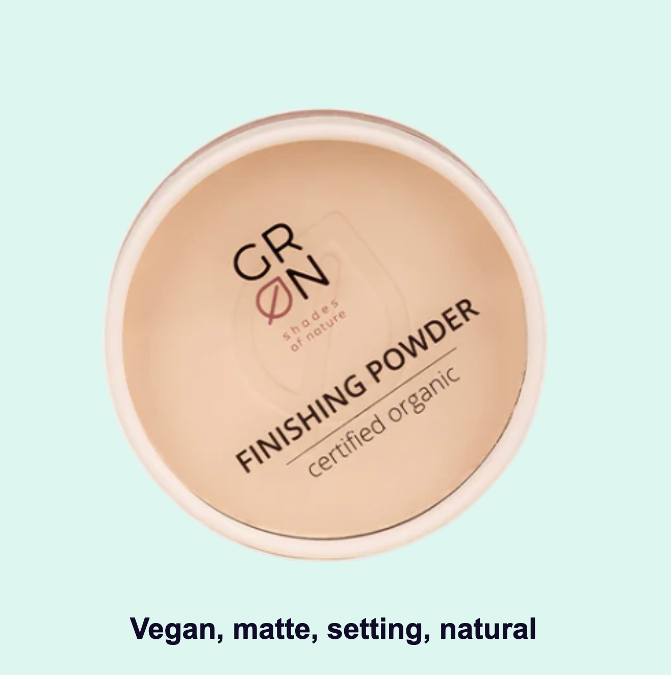Vegan matte powder with minerals. Sets makeup or wear alone. Apply from nose outwards. Ideal for T-zone glow.