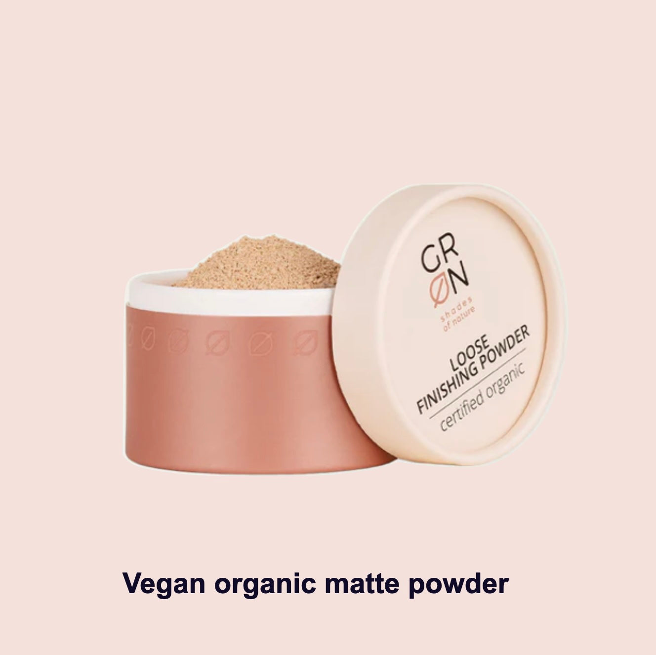Vegan loose powder. Mattifies with clay & organic argan oil. 2 shades. Apply in circles. Needle-pierce foil for dosing.