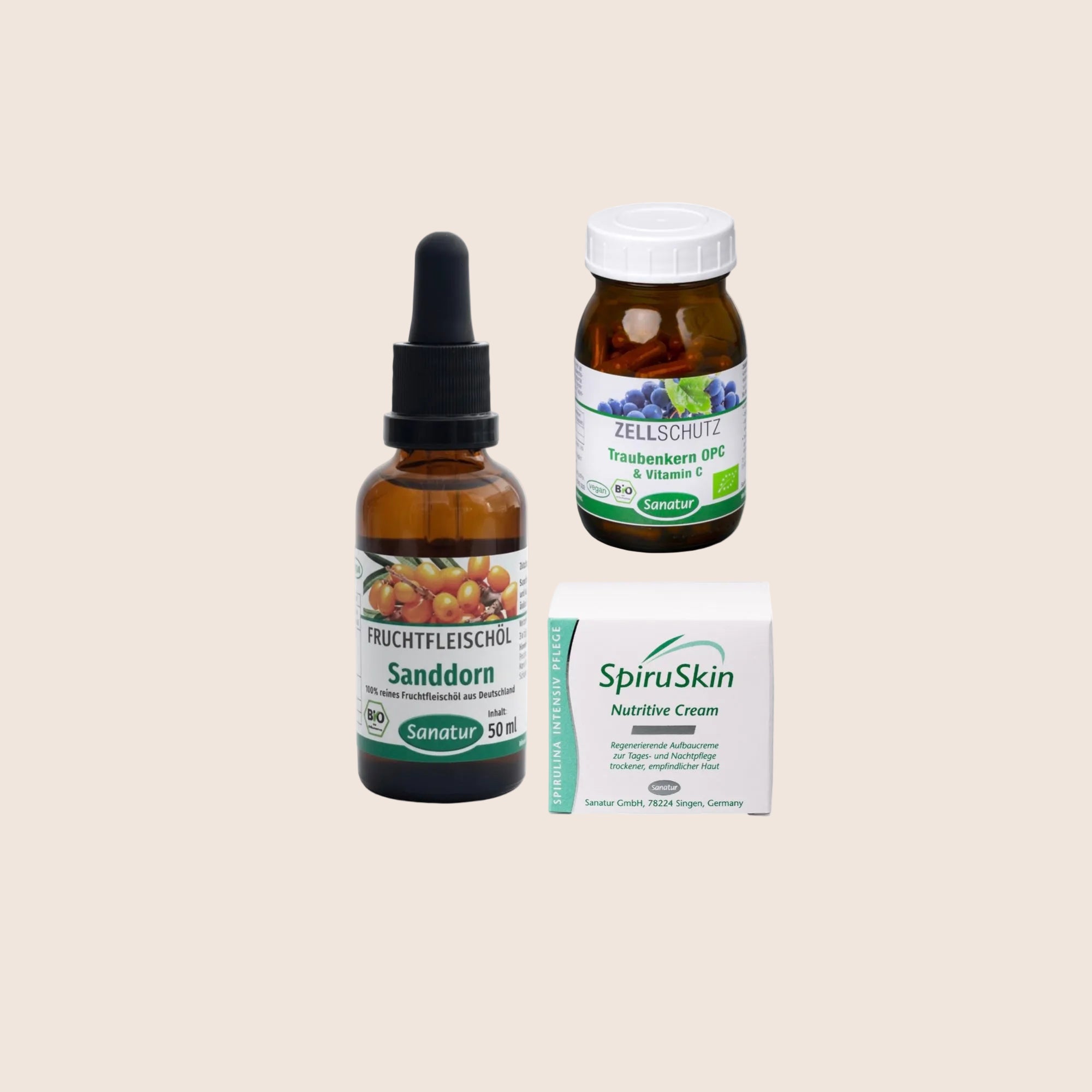 Complement your wellness routine with our Sea Buckthorn Fruit Pulp Oil. Cold-pressed from organic berries grown on the German Baltic coast, this vibrant oil is rich in nutrients for both internal vitality and external skincare. For targeted rejuvenation, the SpiruSkin Regenerating Nutritive Cream utilizes spirulina microalgae and shea butter to smooth wrinkles and nourish dry, sensitive skin.