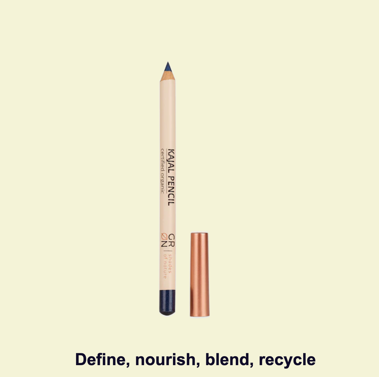 Natural Kajal: Highly pigmented with a soft lead for precise results. Enriched with organic Jojoba, Avocado, and Baobab oils to nourish. Organic Carnauba wax ensures strong adhesion. Its creamy texture is perfect for blending. Available in 5 shades: Black, Grey, Brown, Blue, Green.